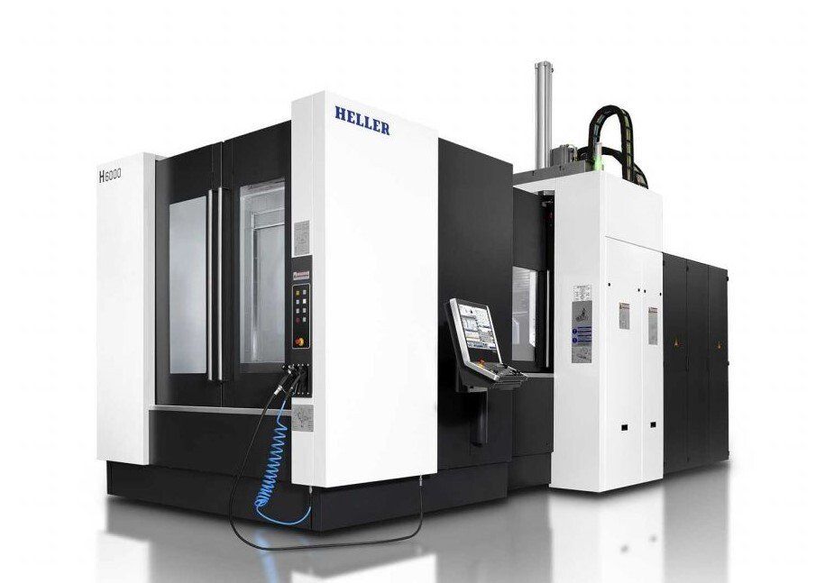 1 centro de mecanizado horizontal HELLER H6000, 4 ejes, control Siemens Sinumerik 8400 si, cono HSK-A-100, almacén 60 htas, 2 mesas 630x630 mm, altura máxima mecanizado 1000 mm.