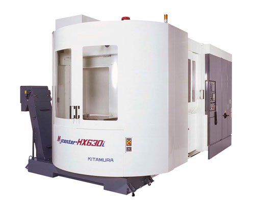 KITAMURA MYCENTER HX6304, 4 ejes, control FANUC 16i-MB, cono BT50, almacén de 50 htas, 2 mesas 630x630 mm, altura máxima mecanizado 750 mm.